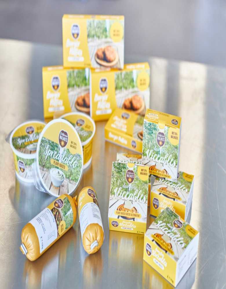 Nut-based product concepts are on the rise in the dairy sector, convincing with creaminess. The prototype called "Spreadable" is a plant-based cream cheese alternative (29% walnut) and can be combined both sweet and savory. The texture is creamy and smooth with a mild nutty flavor. The hard cheese "Sliceable" with 5% walnut is reminiscent of young cheeses. Whether as a cold cut, for gratinating or grating, it can be used in many ways in the kitchen thanks to its excellent melting properties.